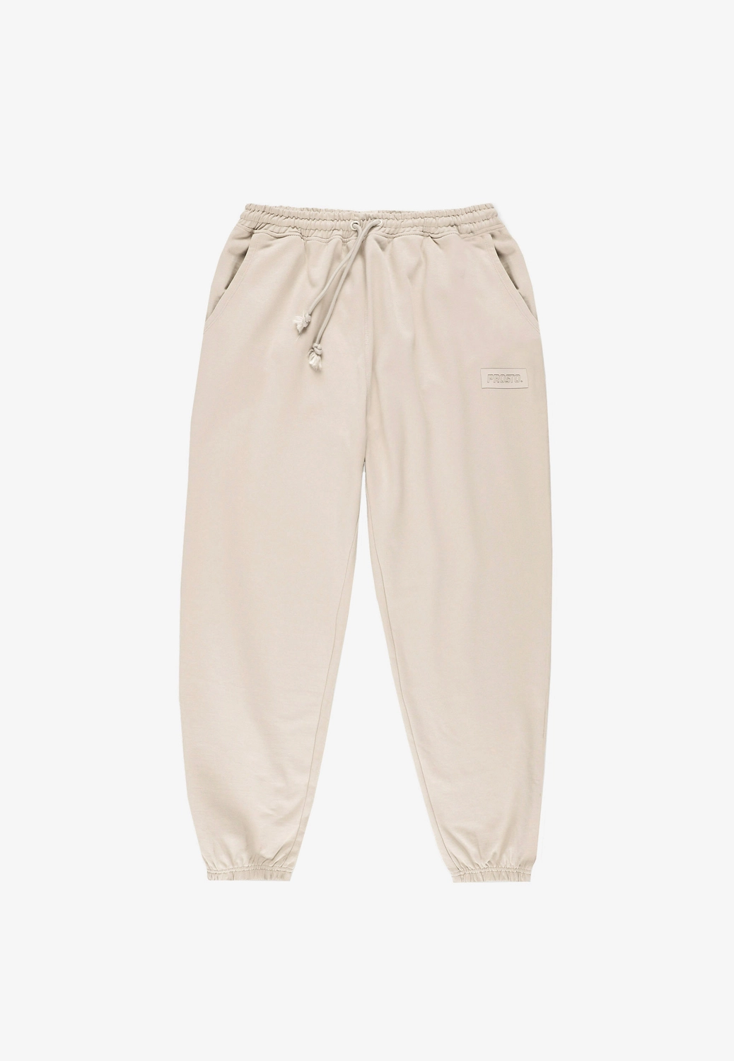 Spodnie typu baggy: luźny krój, sznurek i guma w pasie, ściągacze na nogawkach, logo na lewej nogawce