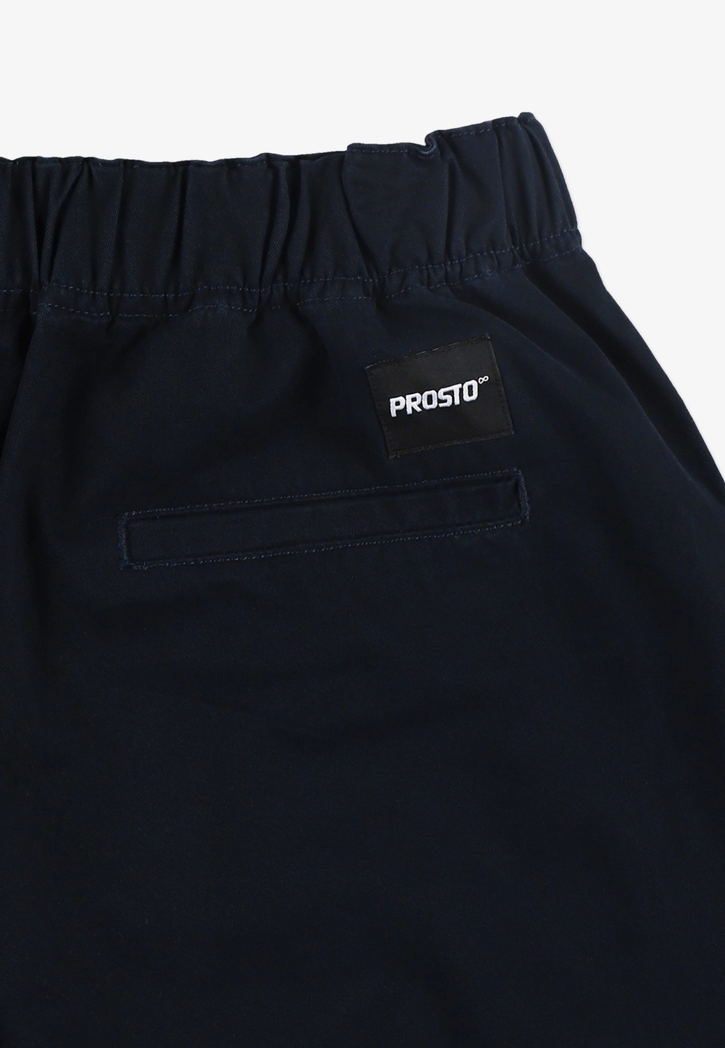 Jeansowe Joggery Baggy Slate w kolorze granatowymto luźne, miejskie spodnie, które łączą swobodę noszenia z wyrazistym stylem streetwear. Obniżony krok i szerokie nogawki zakończone ściągaczami nadają modelowi swobodny charakter, a elastyczny pas ze sznurkiem pozwala dopasować je do sylwetki i zapewnia komfort przez cały dzień. Subtelna żakardowa naszywka z logo Prosto nad tylną kieszenią dodaje spodniom unikalnego, rozpoznawalnego akcentu.