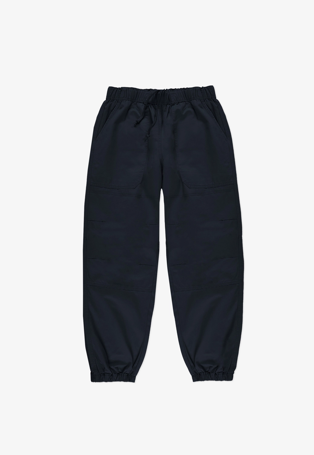 Model Slate o wyraźnie poszerzonym kroju baggy, co gwarantuje maksymalną swobodę ruchów i podkreśla miejski vibe. Jeansowe joggery wykonane w całości z wysokiej jakości bawełny, zapewniają trwałość i naturalne uczucie komfortu. Solidne przeszycia wzmacniają konstrukcję, dzięki czemu spodnie doskonale sprawdzają się w codziennych miejskich stylizacjach. To uniwersalny model, który łatwo połączyć z t-shirtami, bluzami czy sneakersami, tworząc casualowy, swobodny look.