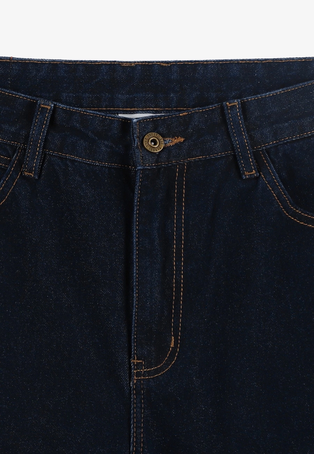 Jeansy Prosto Pulse w kolorze granatowym wyróżniają się minimalistycznym stylem inspirowanym japońską estetyką. Spodnie wykonane z ciemnego, surowego denimu, które łączą klasyczny design z wysoką jakością wykonania. Brak dodatkowych efektów czy przetarć podkreśla ich ponadczasowy charakter, a mocne, kontrastowe przeszycia wskazują na dopracowanie detali i dodają jeansom charakterystycznego streetwearowego sznytu.