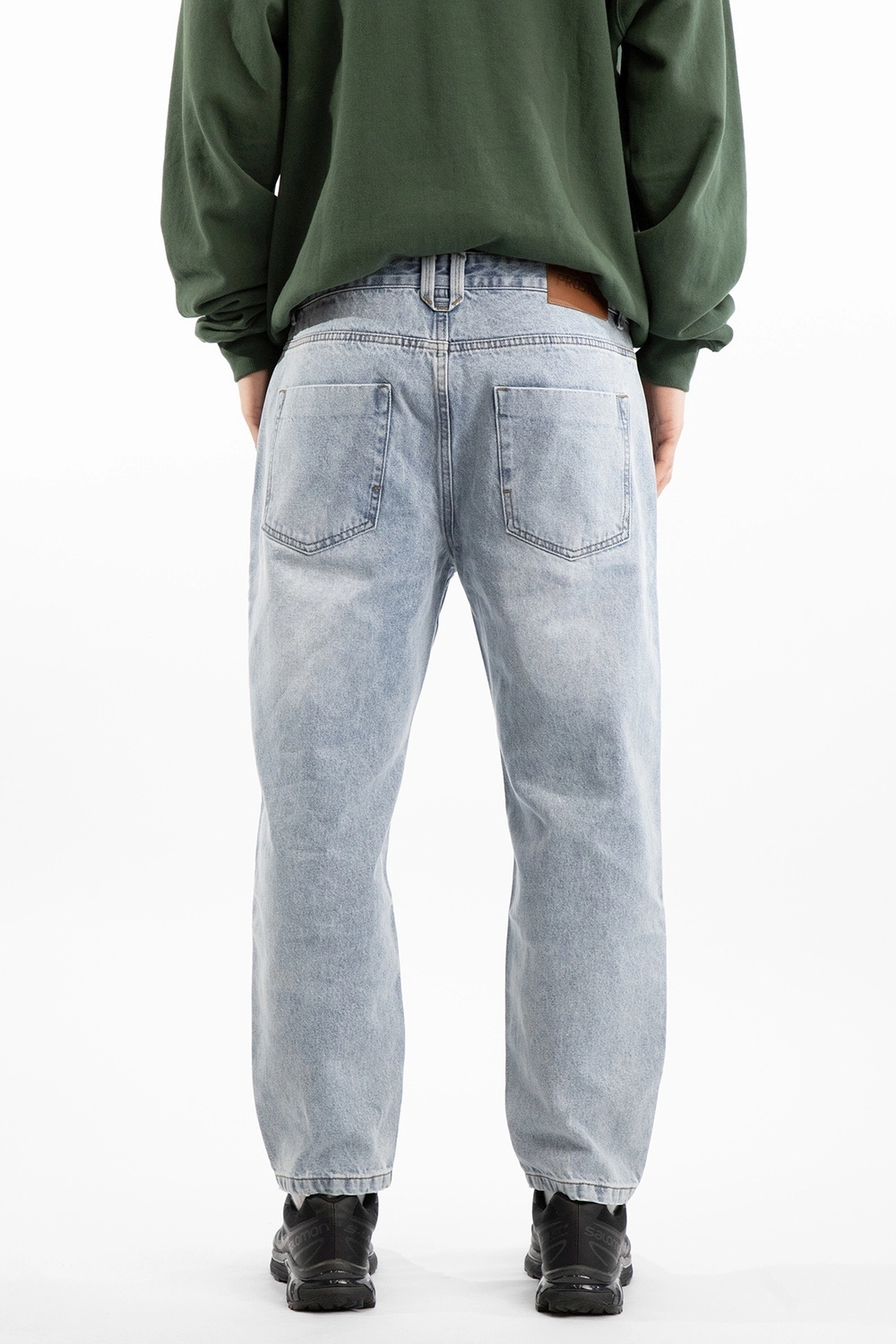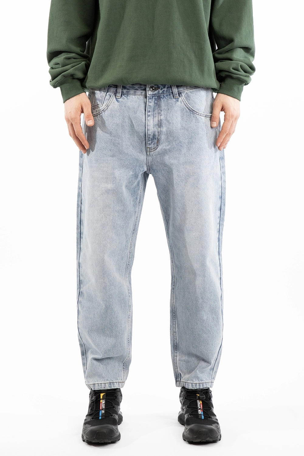 Jeansy Prosto Serif w kolorze szarym to propozycja dla tych, którzy cenią wygodę i uniwersalny, miejski styl. Dzięki delikatnemu efektowi sprania zyskują lekko vintage’owy charakter, a krój tapered - luźny w udach i delikatnie zwężający się ku dołowi - zapewnia komfort noszenia i nowoczesny wygląd. To model, który łączy klasyczne wykończenie z detalami charakterystycznymi dla streetwearu.