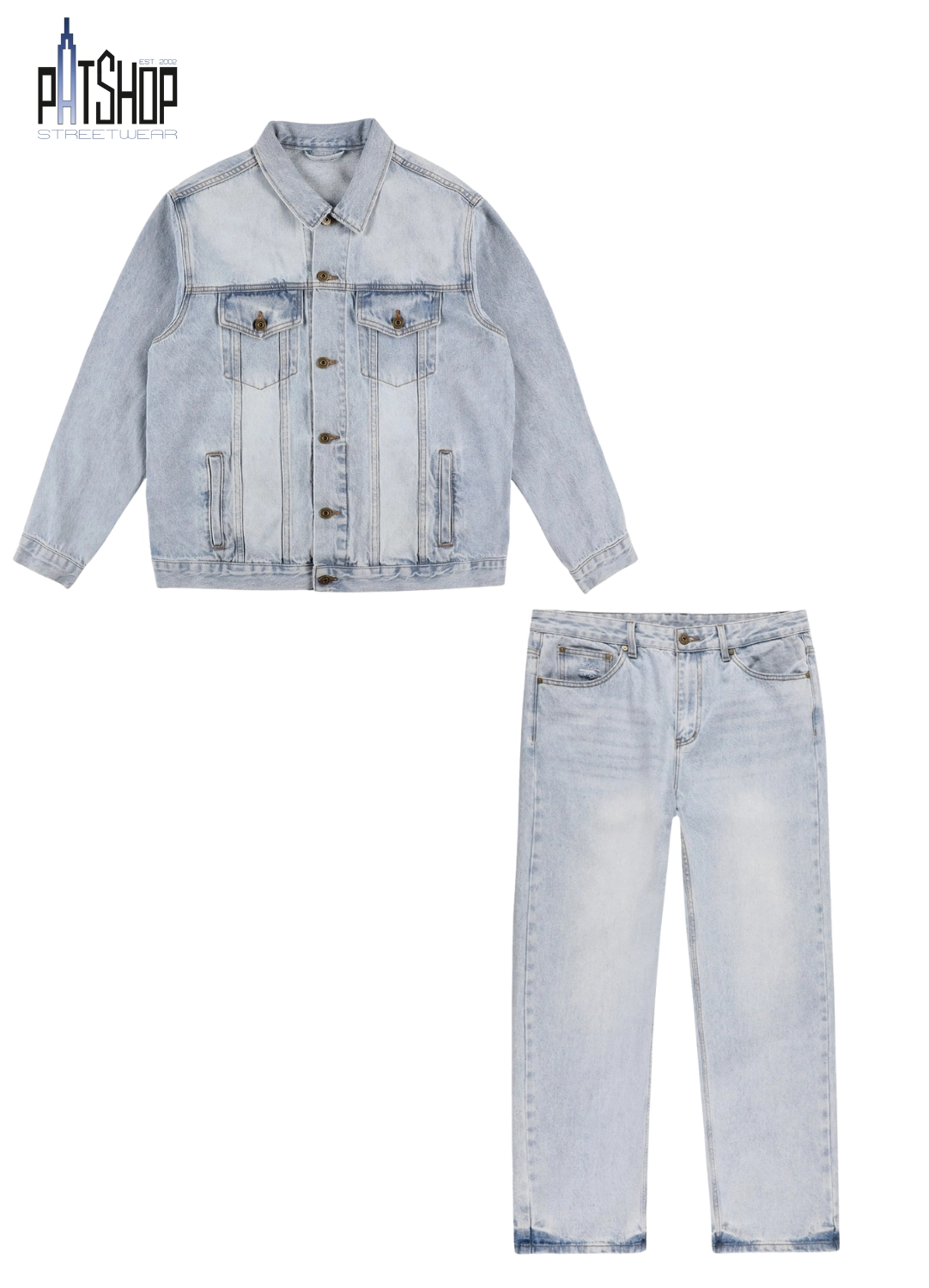 Komplet męski jeansowy Prosto Civil/Bunker – kurtka + spodnie w jednym zestawie