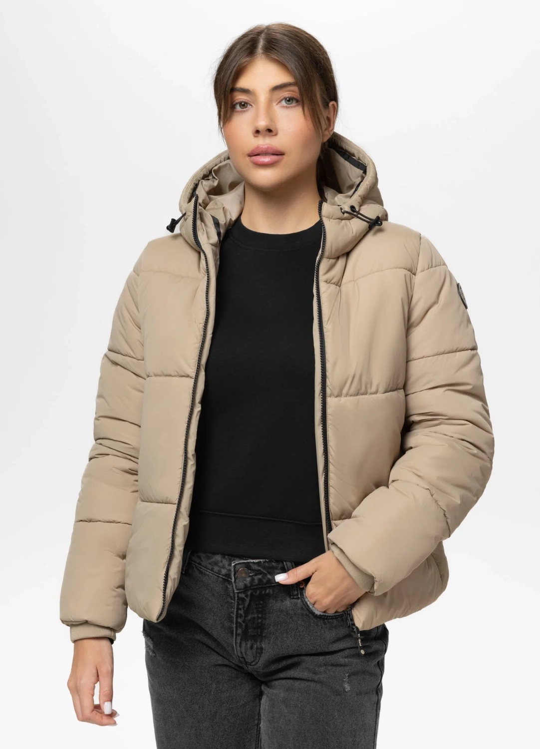 - Zintegrowany, ocieplany kaptur regulowany gumo-sznurkiem ze stoperami