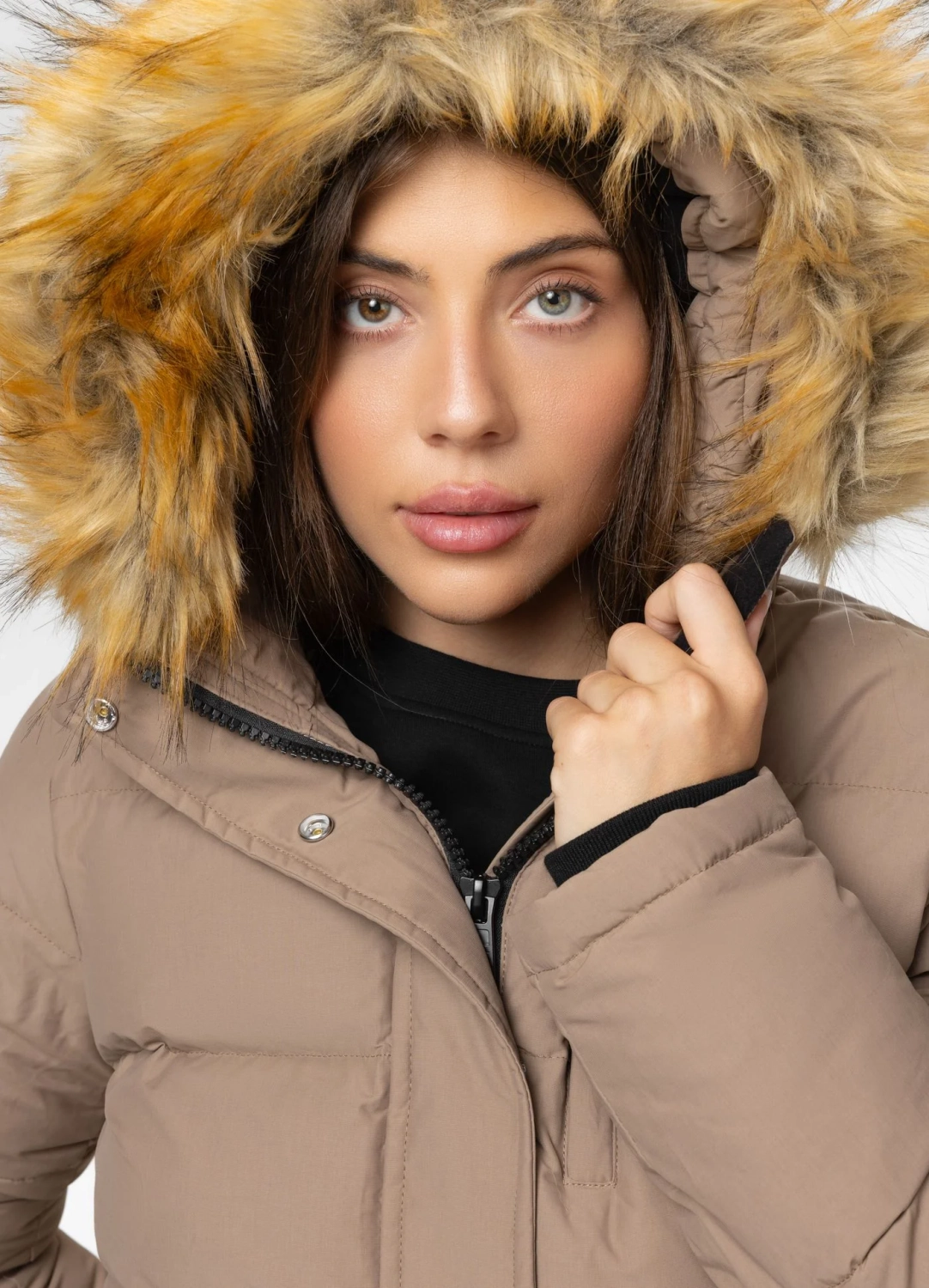 - Zintegrowany ocieplony kaptur wykończony estetycznym odpinanym futerkiem