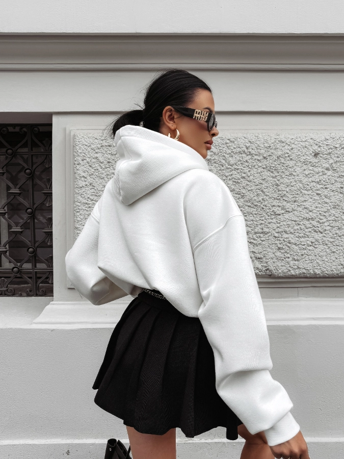 To bluza, którą możesz nosić zarówno do legginsów i sneakersów na co dzień, jak i do jeansów, tworząc luźną, streetwearową stylizację. Uniwersalny charakter sprawia, że z łatwością wpasuje się w Twoją garderobę i stanie się jej mocnym punktem.