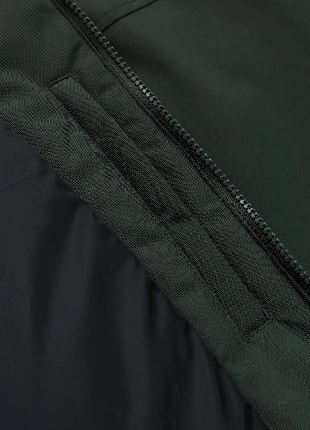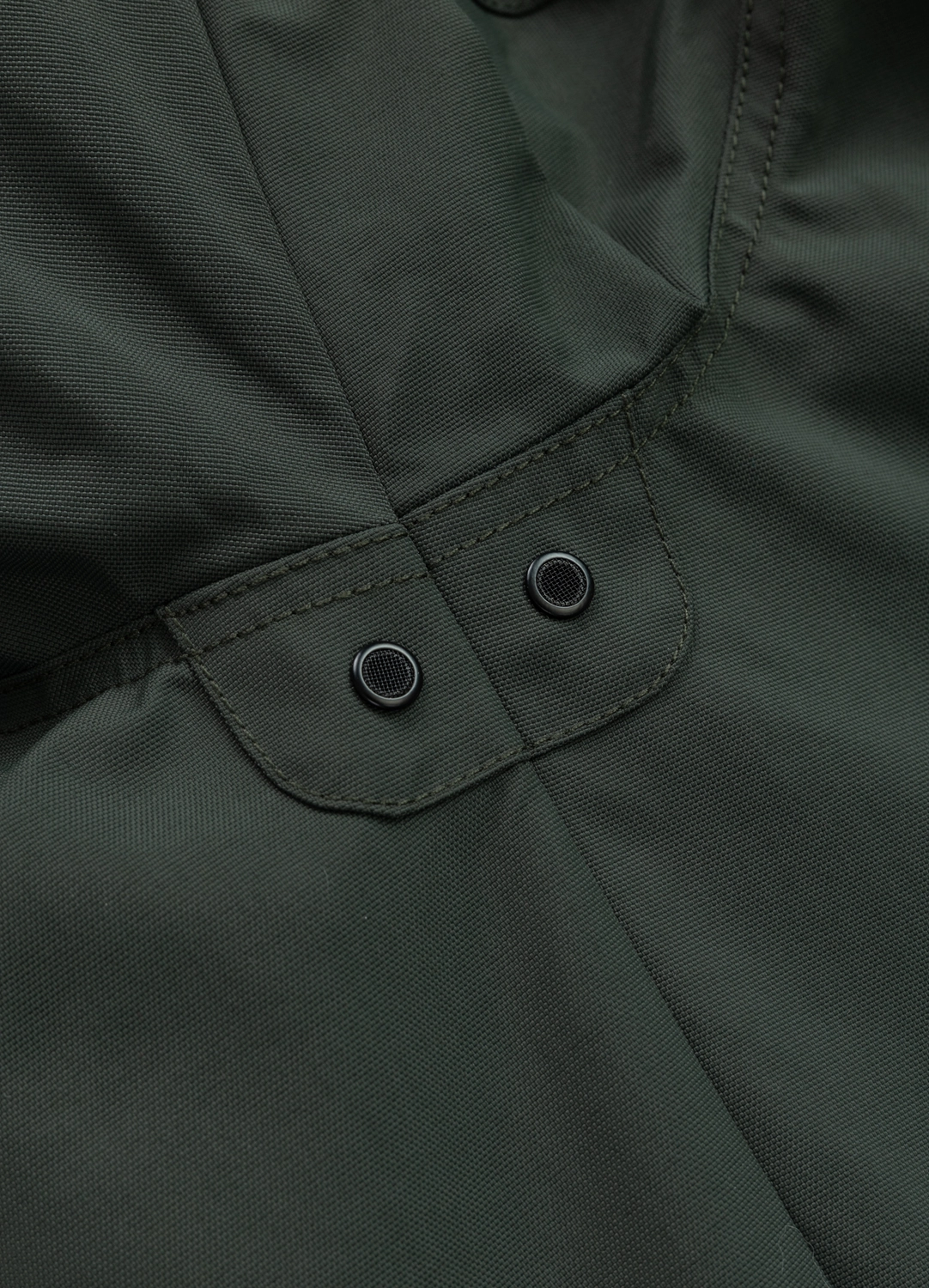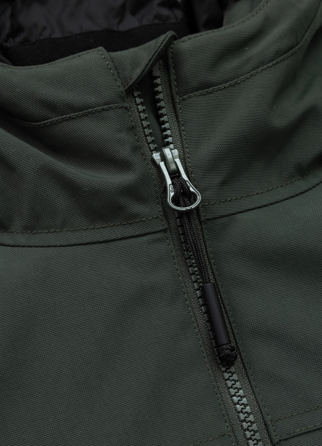 - Uszyta ze specjalnej grubej tkaniny typu taslan odpornej na śnieg, deszcz i wiatr