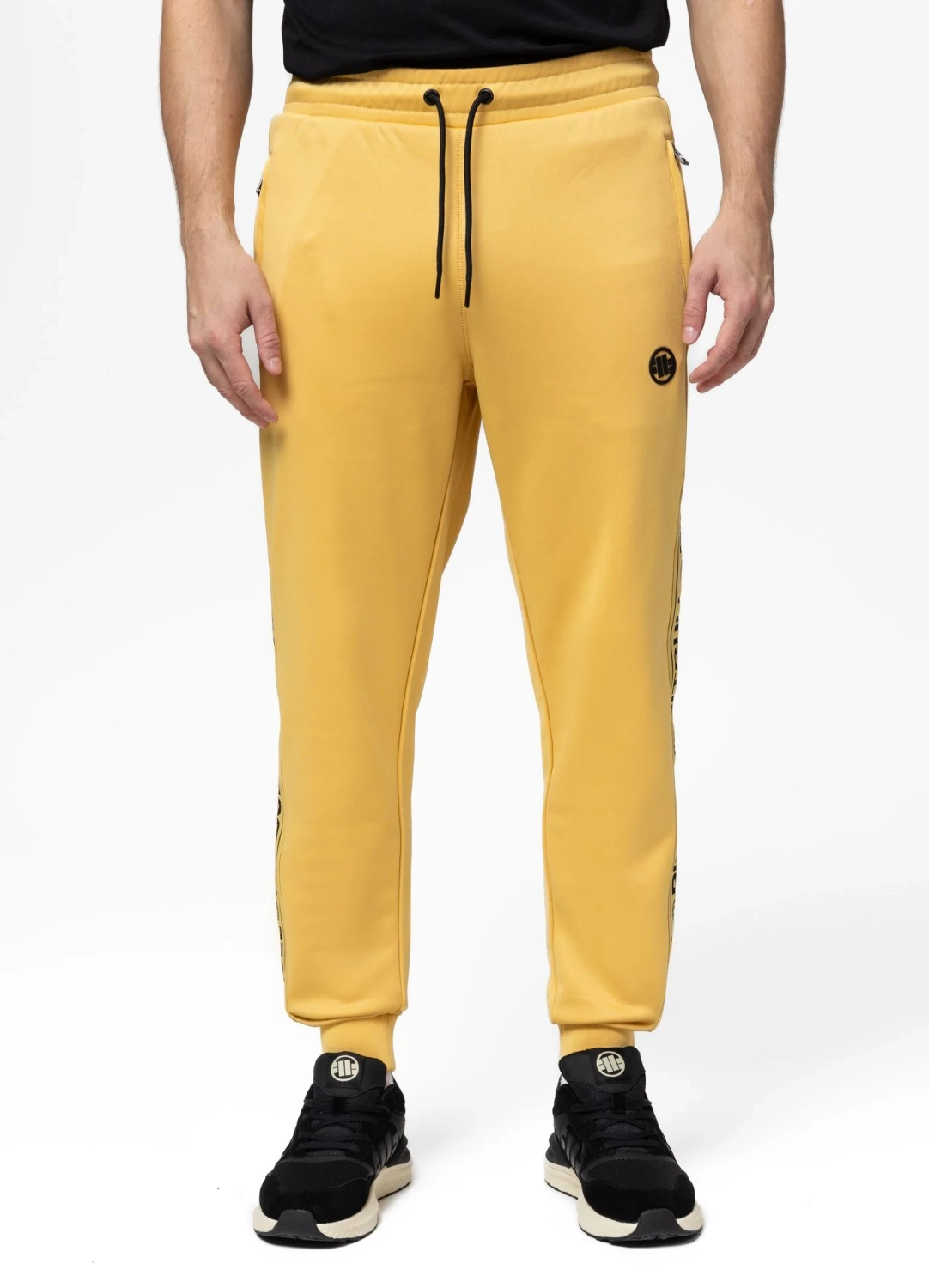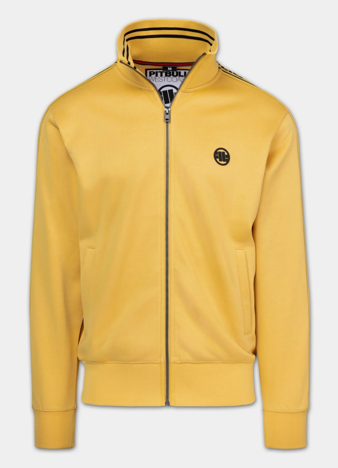 Komplet dresowy męski Pit Bull Tape Logo 25 w kolorze żółtym to propozycja łącząca wygodę z nowoczesnym, sportowym stylem. Wykonany w całości z wysokiej jakości poliestru, gwarantuje komfort noszenia, trwałość oraz swobodę ruchów.
