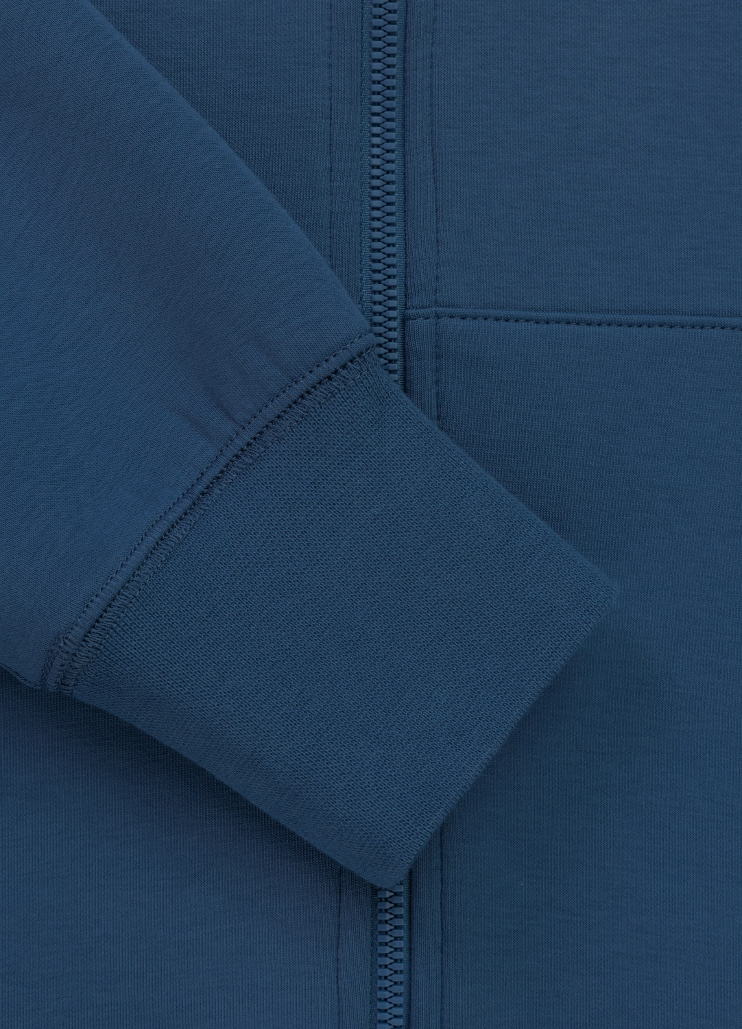 Bluza: zamek pod szyję dla regulacji przewiewu, dobrze chroniący kark kołnierz, ściągacze przy rękawach i na dole bluzy.