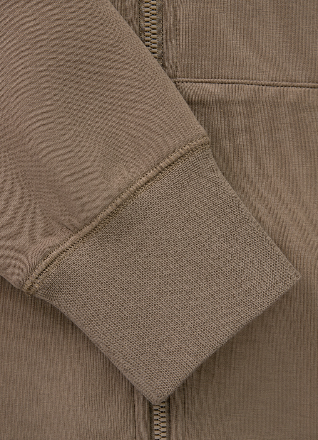 Bluza: zamek pod szyję dla regulacji przewiewu, dobrze chroniący kark kołnierz, ściągacze przy rękawach i na dole bluzy.