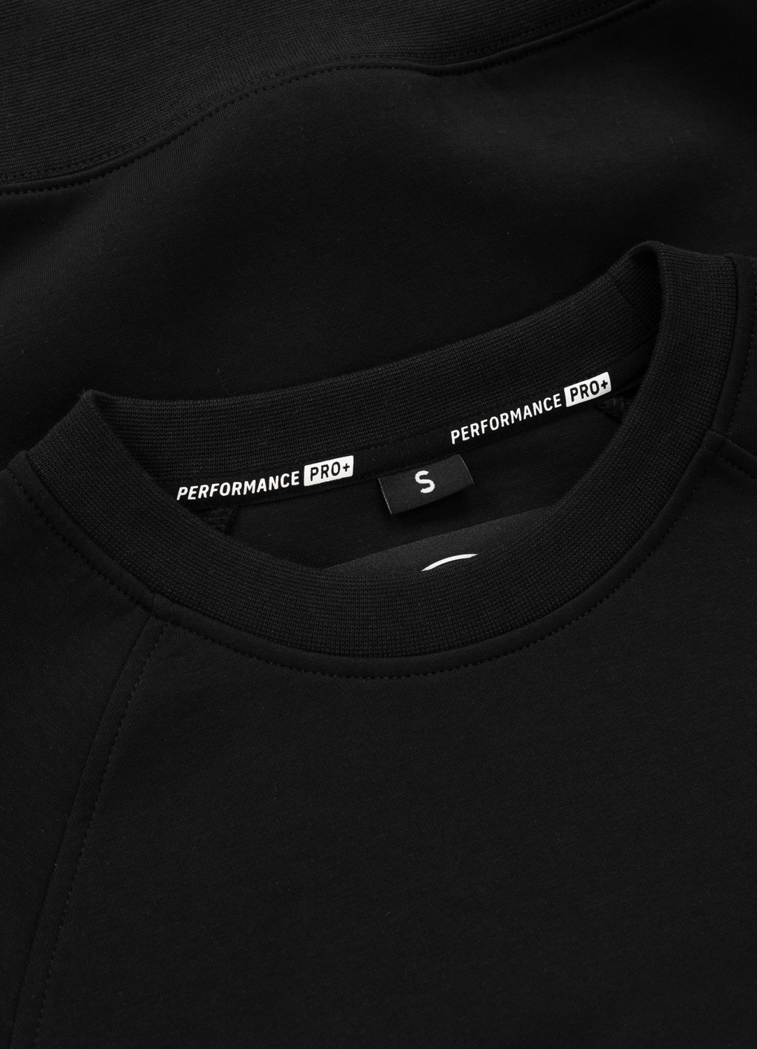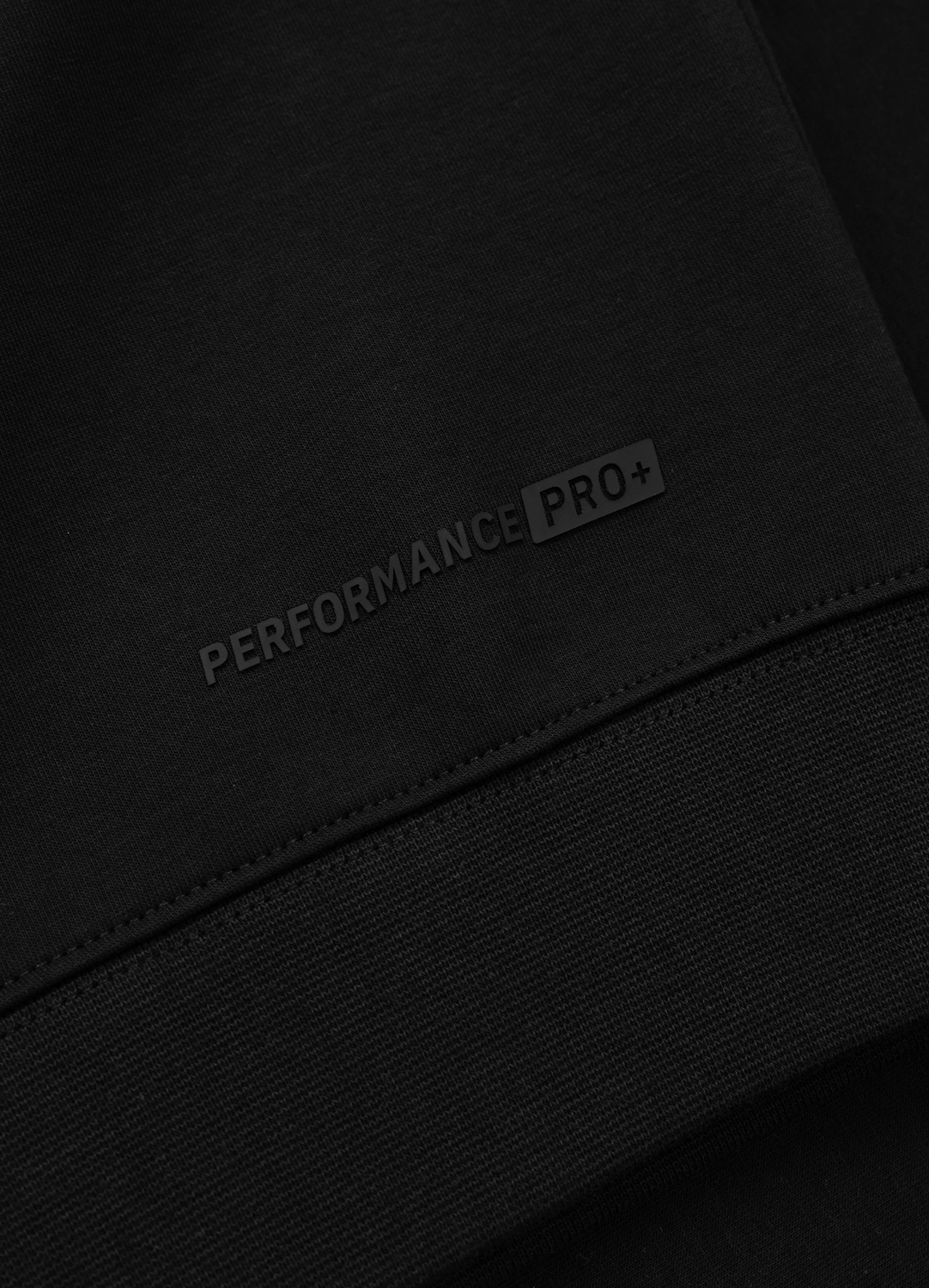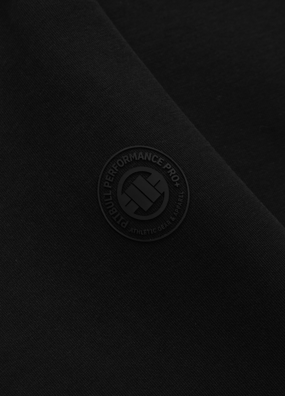 Logo PitBull dyskretnie umieszczone na lewym rękawie i napis Performance Pro+ u dołu bluzy.