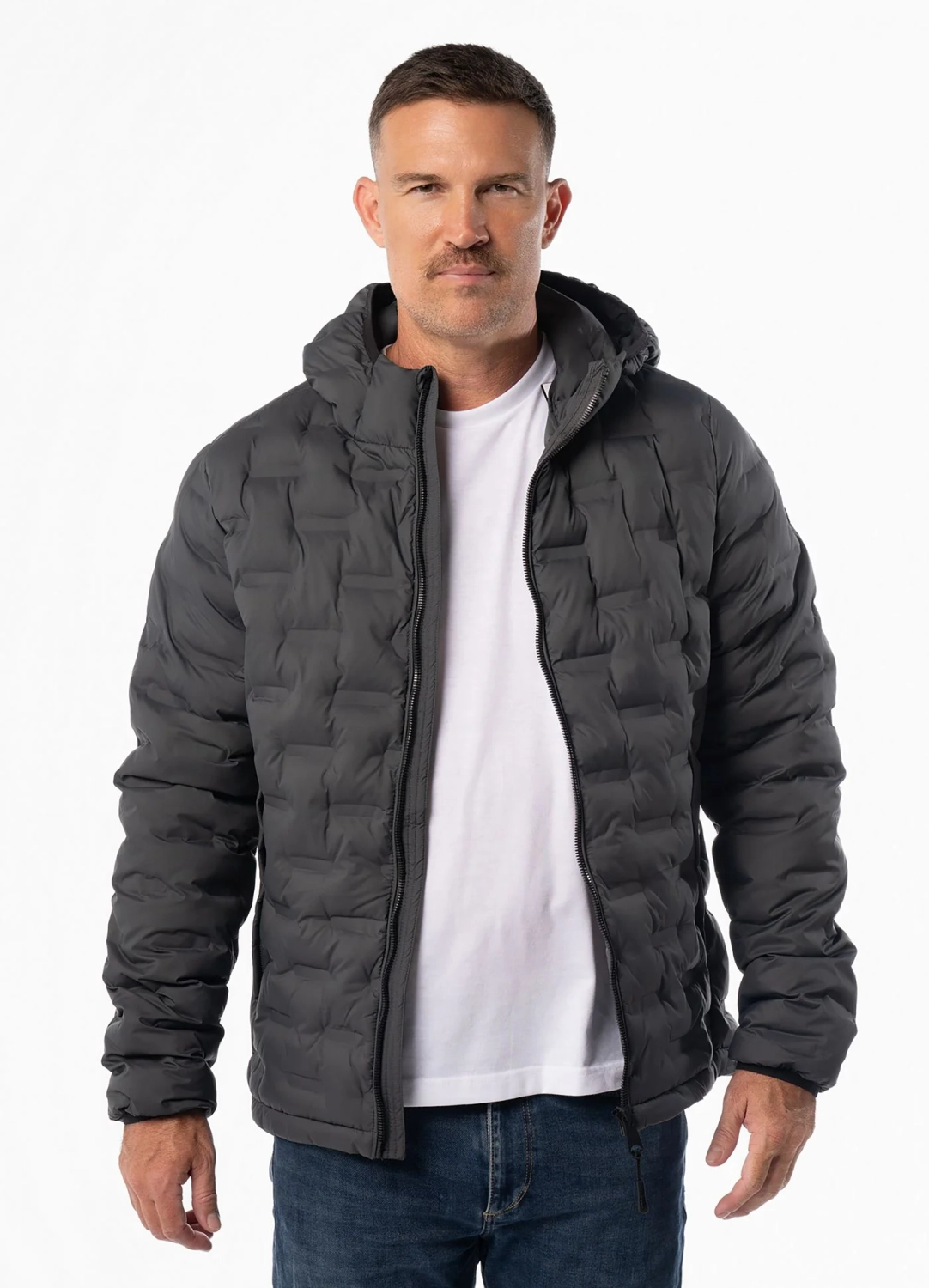 Kurtka męska zimowa pikowana z kapturem Camino — grafitowa