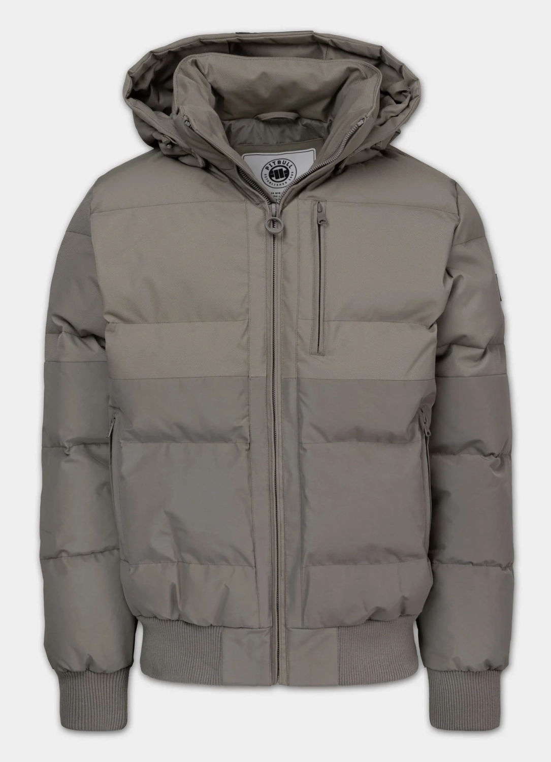 Branding: mała naszywka z logo Pit Bull na lewym rękawie oraz na kapturze