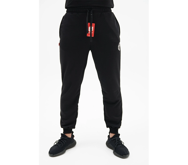 - Logo marki z przodu na lewej nogawce przy kieszeni