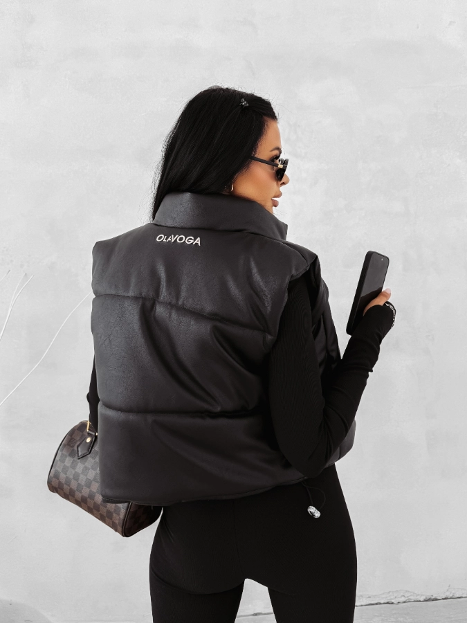 Bęzrękawnik Puff Cloud w kolorze czarnym to połączenie nowoczesnego designu i praktycznej funkcjonalności. Wykonana z wysokiej jakości eko-skóry o pikowanej strukturze, zapewnia trwałość i elegancki wygląd. Model ma krótszy krój, wysoką stójkę oraz zamek błyskawiczny, który umożliwia łatwe dopasowanie i komfort noszenia.