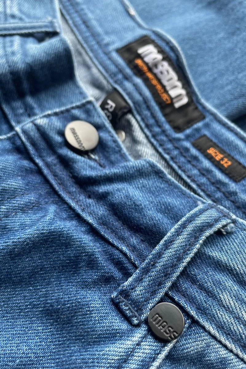 - Męskie spodnie jeansowe marki Mass DNM