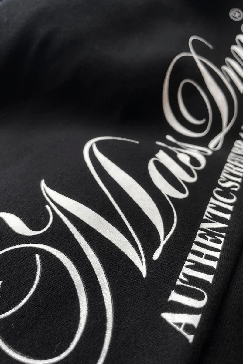 - Duży nadruk na lewej nogawce