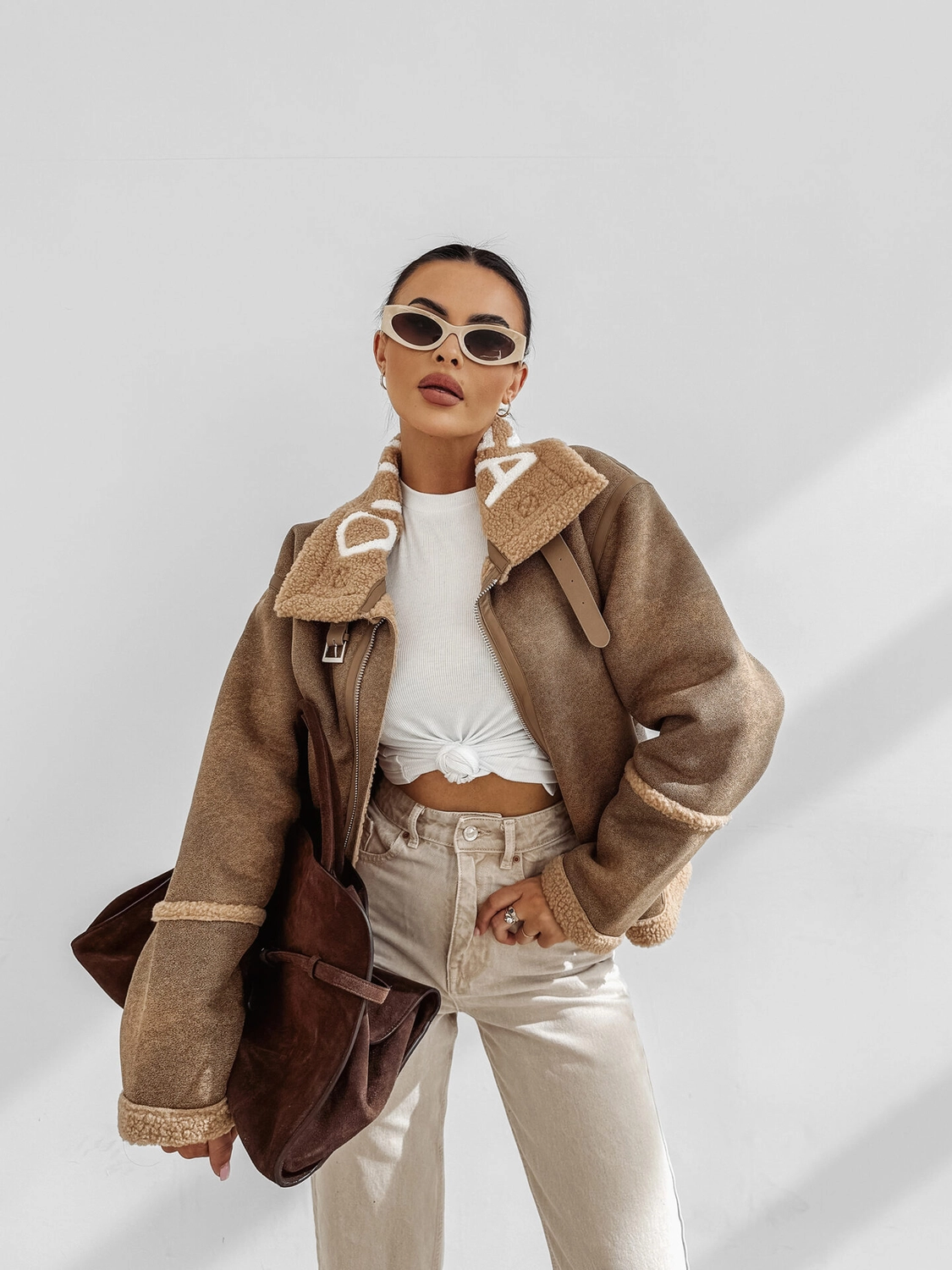 Damska kurtka Lennox w kolorze beżowym to klasyka w nowoczesnym wydaniu - stworzona z myślą o komforcie, stylu i uniwersalności. Wykonana z wysokiej jakości materiału imitującego skórę, prezentuje się elegancko, a jednocześnie jest praktyczna i odporna na codzienne użytkowanie. Wnętrze ocieplone miękkim kożuszkiem gwarantuje przyjemne ciepło nawet w chłodniejsze dni.