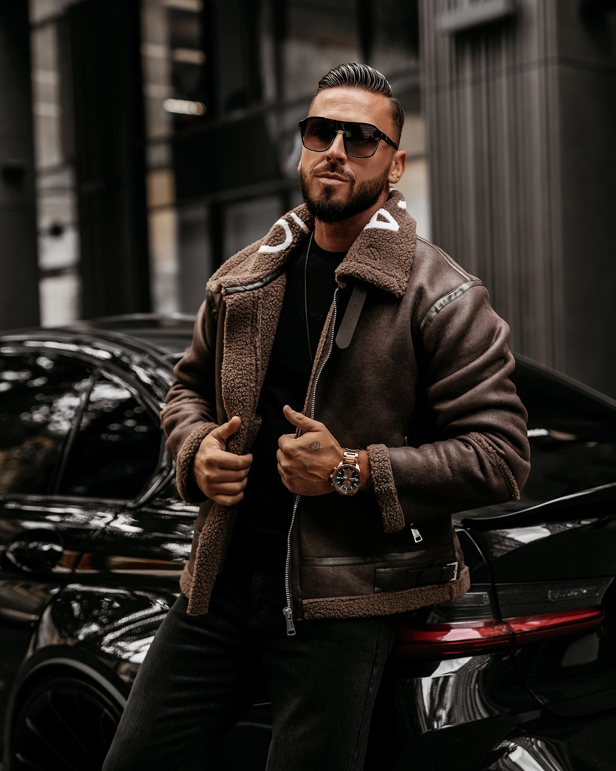 Męska kurtka Lennox w kolorze brązowym to klasyka w nowoczesnym wydaniu - stworzona z myślą o komforcie, stylu i uniwersalności. Wykonana z wysokiej jakości materiału imitującego skórę, prezentuje się elegancko, a jednocześnie jest praktyczna i odporna na codzienne użytkowanie. Wnętrze ocieplone miękkim kożuszkiem gwarantuje przyjemne ciepło nawet w chłodniejsze dni.