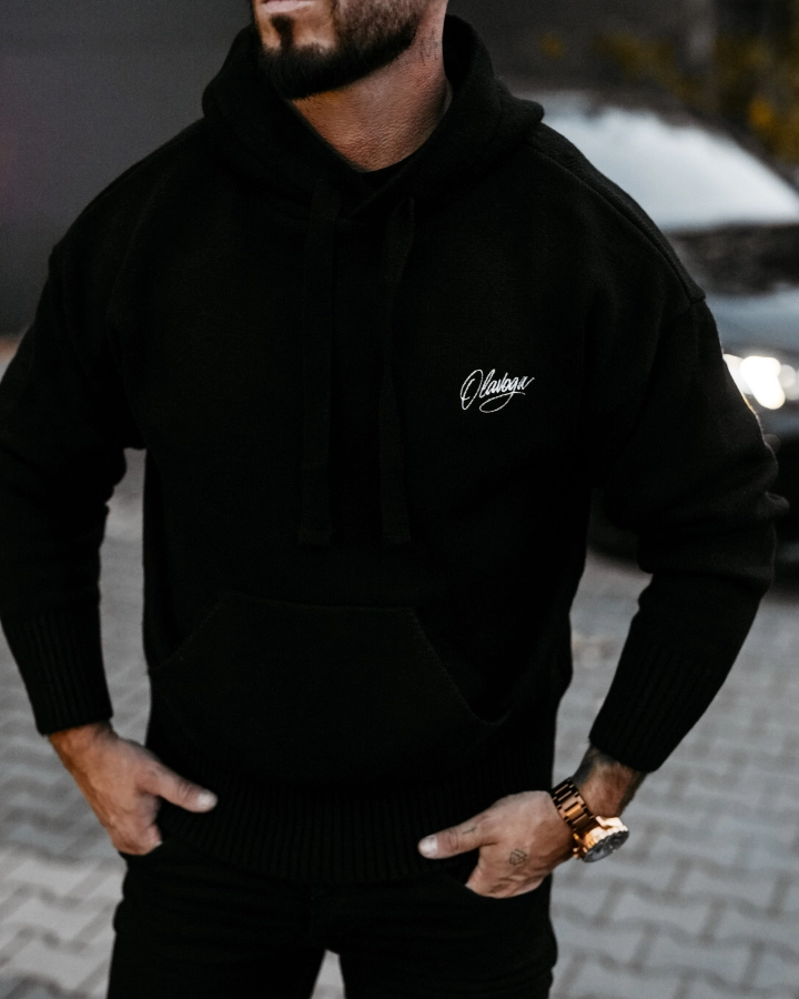 Sweter męski z kapturem Olavoga Folnel - czarny