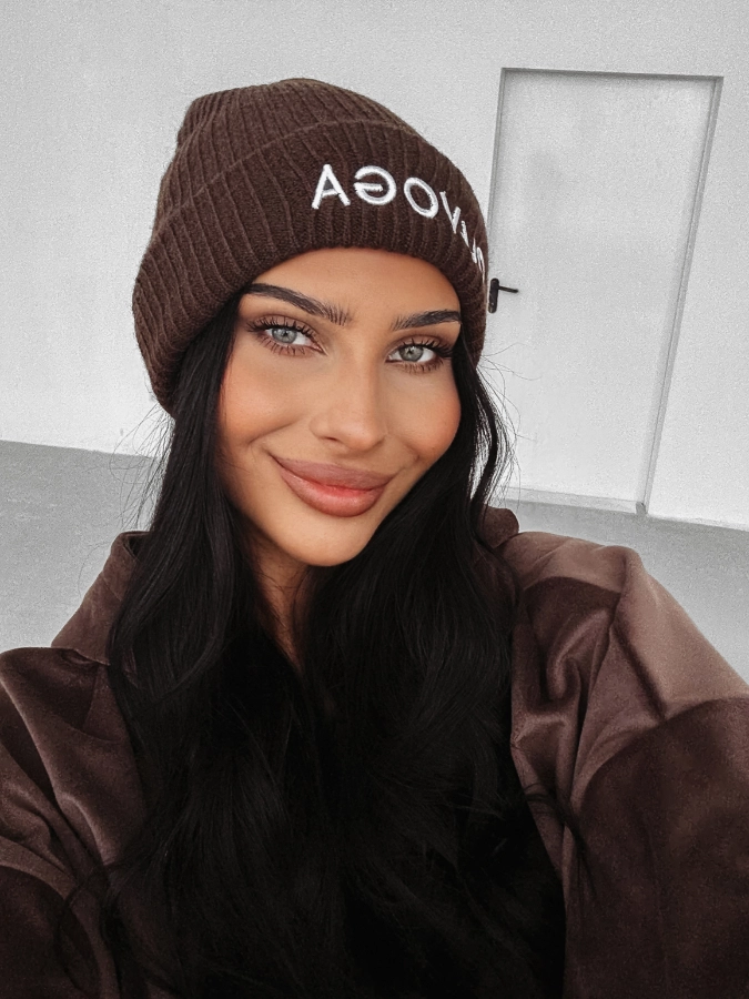 Czapka dzianinowa OLAVOGA FIOLITO brązowa – modna i ciepła czapka na zimę