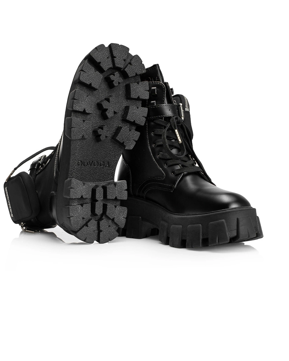 Efektownym i niezwykle praktycznym akcentem jest odpinana mini saszetka przy kostce - idealna na drobne akcesoria, kluczyk czy monety. Buty są sznurowane, a dodatkowy pasek z klamrą dodaje im charakteru oraz zapewnia lepsze dopasowanie.