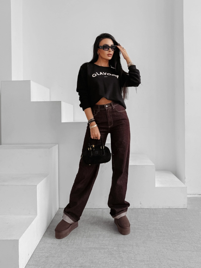 Przód zdobi duże, kontrastowe logo OLAVOGA, a tuż pod nim umieszczono subtelny akcent „olv”, nadający bluzie charakterystycznego wykończenia. Rękawy i dół zakończono elastycznymi, prążkowanymi ściągaczami, które podkreślają jej klasyczną formę i zapewniają wygodne dopasowanie. Na jednym z rękawów znajduje się delikatny haft z logo marki - elegancki detal, który dopełnia całość.