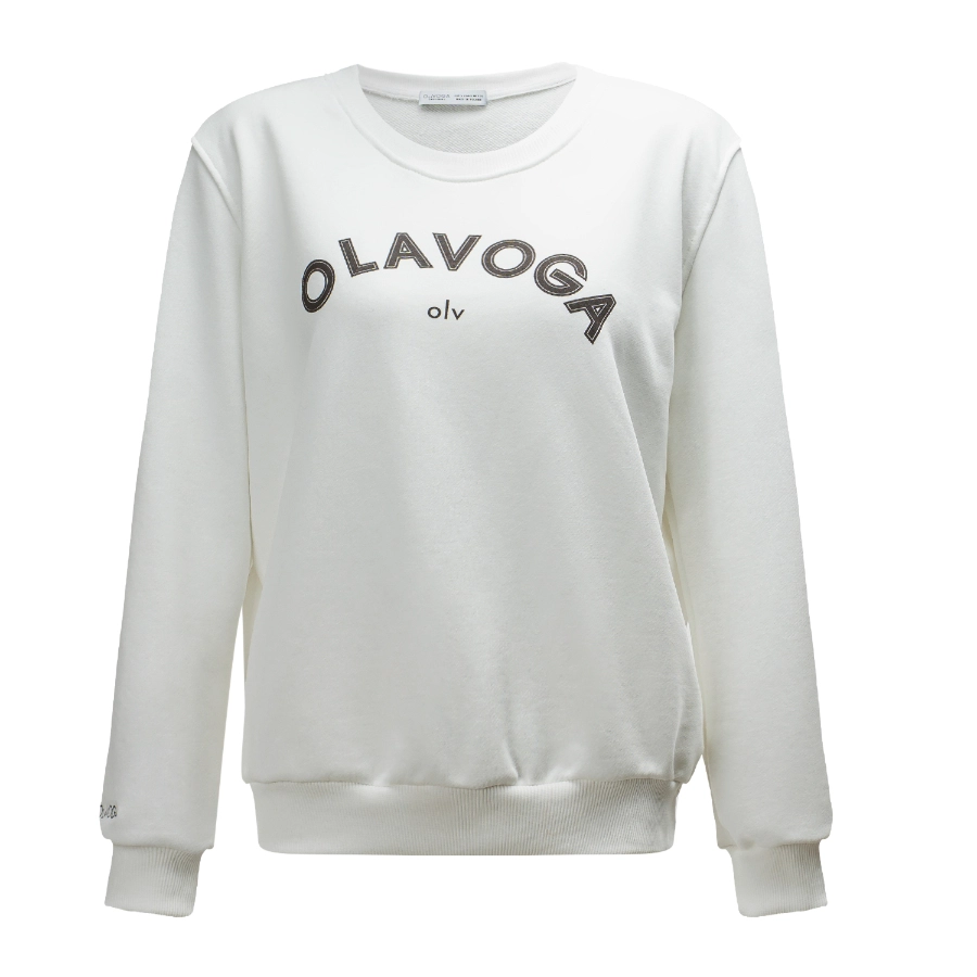 Przód zdobi duże, kontrastowe logo OLAVOGA, a tuż pod nim umieszczono subtelny akcent „olv”, nadający bluzie charakterystycznego wykończenia. Rękawy i dół zakończono elastycznymi, prążkowanymi ściągaczami, które podkreślają jej klasyczną formę i zapewniają wygodne dopasowanie. Na jednym z rękawów znajduje się delikatny haft z logo marki - elegancki detal, który dopełnia całość.