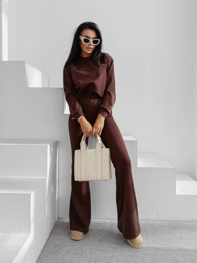Komplet Mosseil w kolorze brązowym to idealna propozycja dla kobiet ceniących wygodę, miękkie materiały i modny minimalizm. Wykonany z wysokiej jakości dzianiny o przyjemnej, elastycznej strukturze, zapewnia pełen komfort przez cały dzień, jednocześnie podkreślając kobiecą sylwetkę.