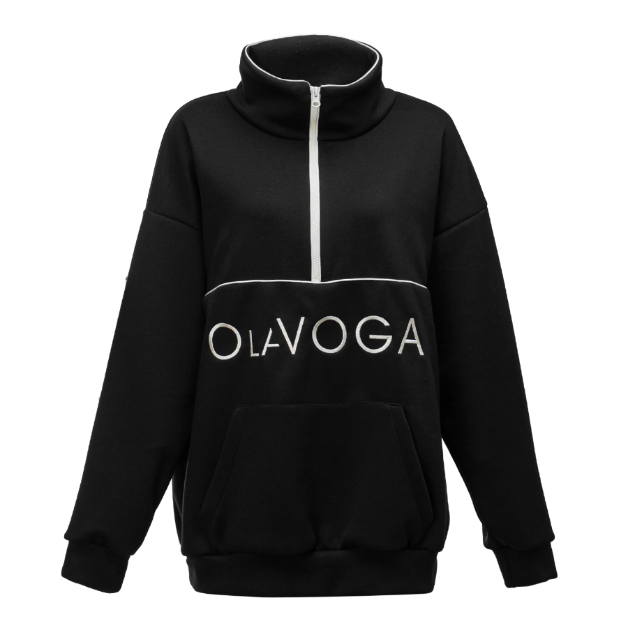 Z przodu znajduje się duża, praktyczna kieszeń typu kangurka oraz obszerne, kontrastujące logo marki OLAVOGA, które nadaje bluzie wyrazistego, streetwearowego charakteru.