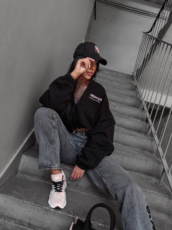 Damska bluza z kapturem Tulip w kolorze czarnym to propozycja dla kobiet, które cenią wygodę, modny krój i wyraziste, ale stonowane detale. Model o oversize’owym fasonie i krótszej długości doskonale wpisuje się w aktualne trendy, podkreślając sylwetkę i nadając stylizacji lekkości oraz miejskiego charakteru.